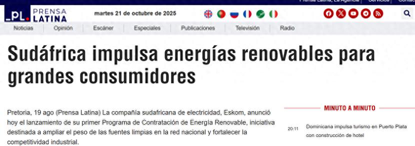 对此,拉丁美洲通讯社发文称,南非是世界上最依赖煤炭的经济体之一,面临国内外强烈压力,要求加快向更清洁的能源模式转变。多年来,埃斯科姆已经开发了电池储能项目和抽水蓄能电站,同时推进到2040年实现32吉瓦可再生能力和绿色氢项目的研究。