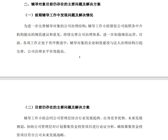 针对下一阶段的辅导工作安排,报告指出,辅导人员预计不会发生变化,辅导工作重点主要包括:一是进一步开展全面尽职调查。辅导小组将继续对辅导对象的法律、业务、财务等方面开展全面尽职调查,并进一步通过各类细节测试、内控测试、资金流水核查及访谈走访等方式,对公司状况进行更为深入的核查与规范,对辅导对象的公司治理、规范运作、财务信息及经营模式等方面进行更为全面的尽调梳理,按照辅导计划以及公司具体情况有序推进辅导工作。