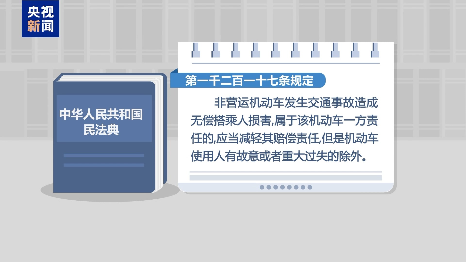 《中华人民共和国民法典》第一千二百一十七条规定,非营运机动车发生交通事故造成无偿搭乘人损害,属于该机动车一方责任的,应当减轻其赔偿责任,但是机动车使用人有故意或者重大过失的除外。