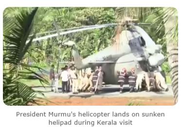 据《印度时报》报道,印度总统穆尔穆于当地时间21日开启对印度南部喀拉拉邦为期四天的正式访问。22日,其乘坐的直升机在降落至当地一体育场的直升机坪时发生意外,部分地面在机轮触地后突然下陷。