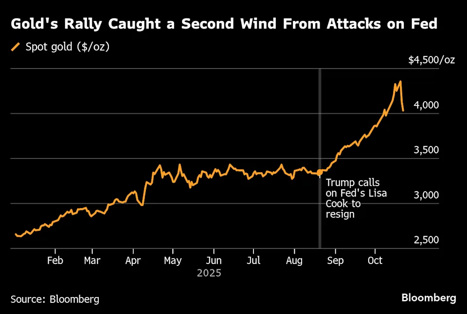 凯文·史密斯(Kevin Smith)管理着规模达4.2亿美元的Crescat Capital对冲基金,自2019年以来一直看好黄金,当时金价低于每盎司1500美元。他指出,过去两天,金价下跌了6.5%,一度逼近每盎司4000美元的整数关口,“但仍值得买入”。
