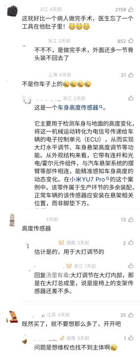 浙江金华的余先生,买了一辆小米YU7Pro,在使用过程中,发现主驾的座位正下方,有一个硬质的隆起,门店工作人员后来从底下掏出了一个小东西,他想知道这到底是什么东西,但是工作人员却难以正面回答。