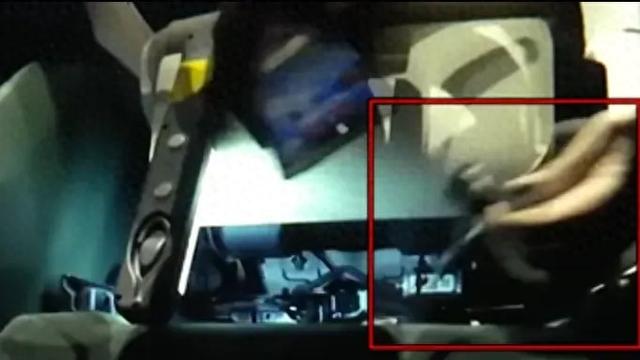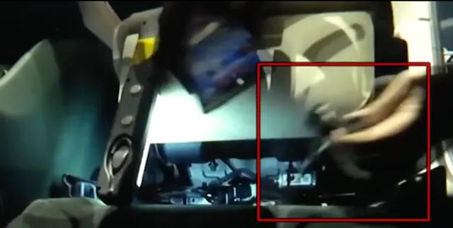工作人员把主驾的座椅给拆了几个螺丝,把主驾给抬起来了,然后从主驾座椅下方的一个孔里,工作人员用手拉出来了一个不知名的零件。