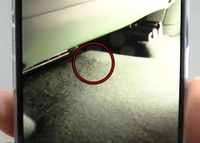 10月14日的晚上,余先生买了一个脚垫,然而在换脚垫的时候,他突然间发现在主驾的座椅的正下方,它有一个硬质的隆起,用手是按不下去的。余先生说照片中用红圈圈出来的位置,就是当时摸到硬质隆起的地方。