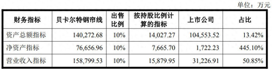 本次交易完成后,上市公司将不再持有贝卡尔特钢帘线的股权。