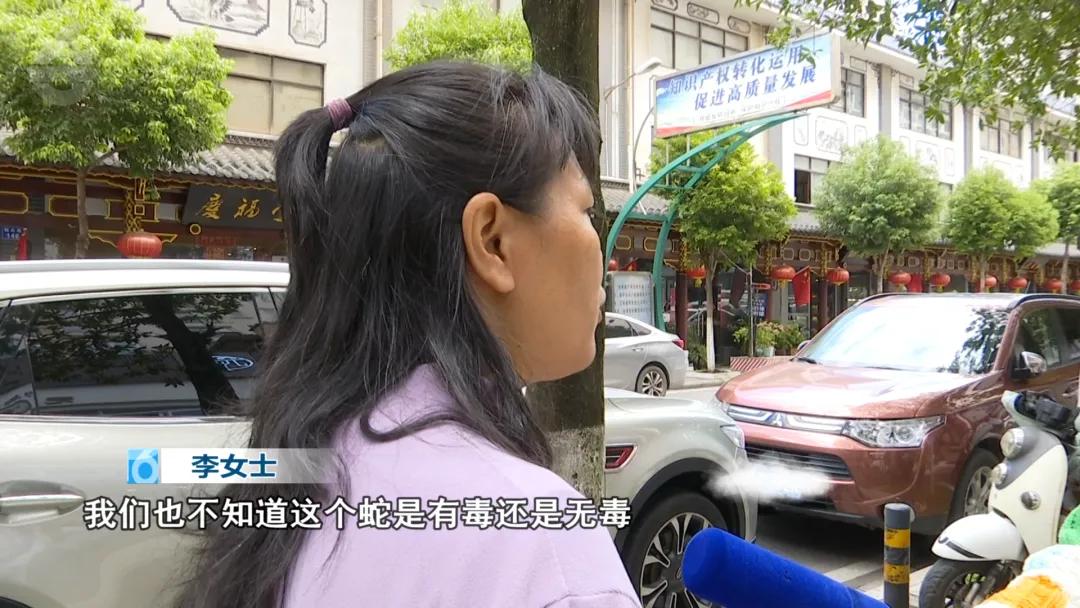 由于当时蛇被胶带固定住,无法判断是否还活着,随后当孩子的奶奶准备处理的时候,蛇动了。李女士表示:“孩子奶奶赶紧用火钳把它夹住,它就一直在挣扎。”