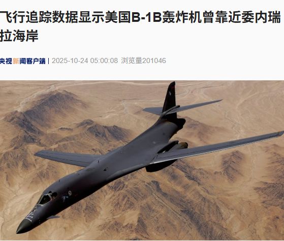 据央视新闻,当地时间10月23日,总台记者获悉,根据飞行追踪数据显示,当日至少有一架美国B-1B轰炸机靠近委内瑞拉沿岸。这是美国军机一周内第二次进行此类武力展示。
