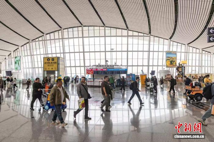 10月24日,北京大兴国际机场航站楼内人流如织。10月26日起,大兴机场将进入冬春航季。(大兴机场供图)