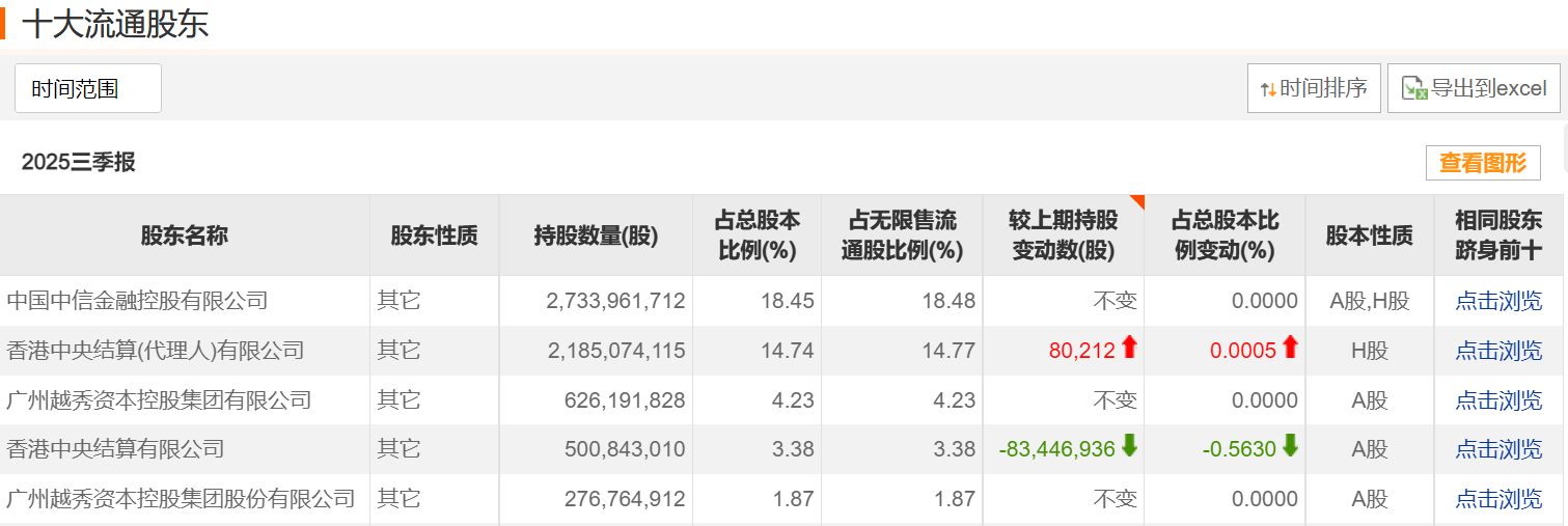 那么,抛开今日不谈,到底9月的两次压单是否是越秀资本所为呢?这个问题暂时没有答案。不过从中信证券新鲜出炉的三季报可以看出,即使挂单了,越秀资本还是没有减持中信证券。