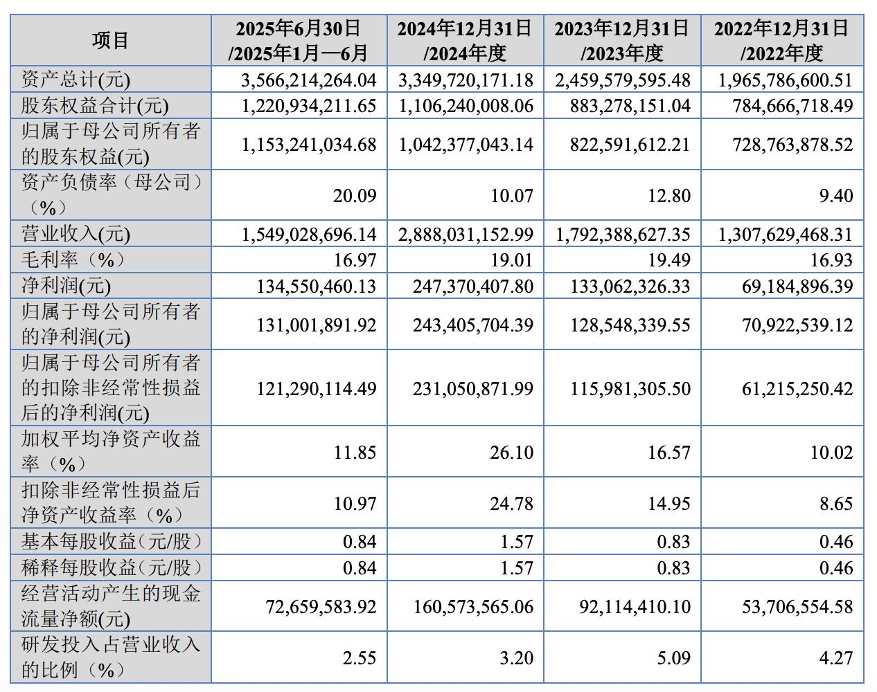 财务数据显示,2022年至2024年及2025年上半年(简称“报告期”),泓毅股份实现营业收入分别为13.08亿元、17.92亿元、28.88亿元及15.49亿元,实现净利润分别为7092.25万元、1.29亿元、2.43亿元及1.31亿元。