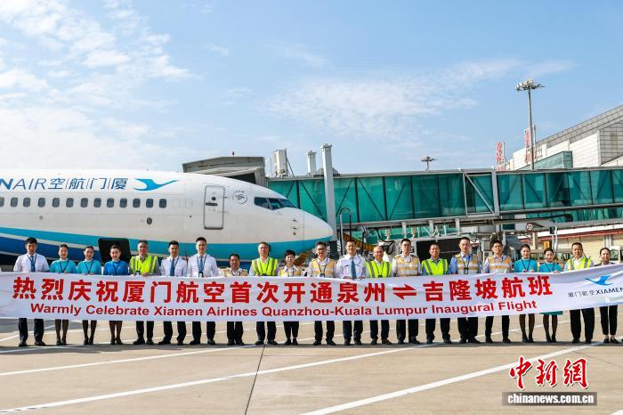 厦门航空MF8661航班27日从福建泉州晋江国际机场起飞,标志着泉州至吉隆坡直飞航线正式开通。