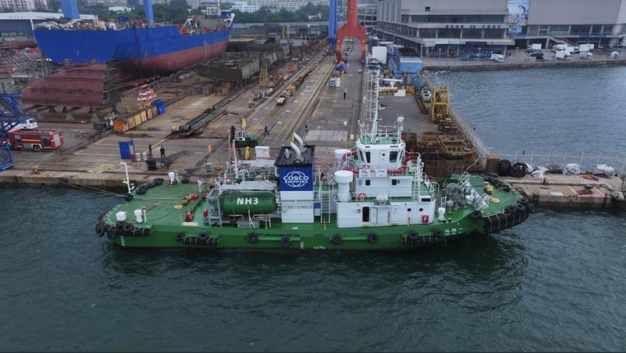 ▲全球首单绿色船用氨燃料加注作业在大连港完成