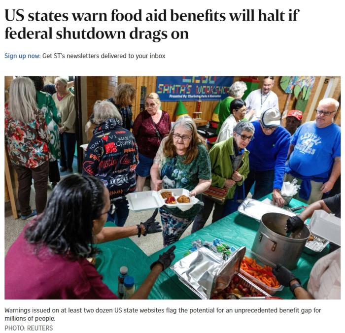 据美国广播公司(ABC)报道称,美国农业部在一份通知中表示: “归根结底,资金已经枯竭。11月1日起将不会发放任何福利。”