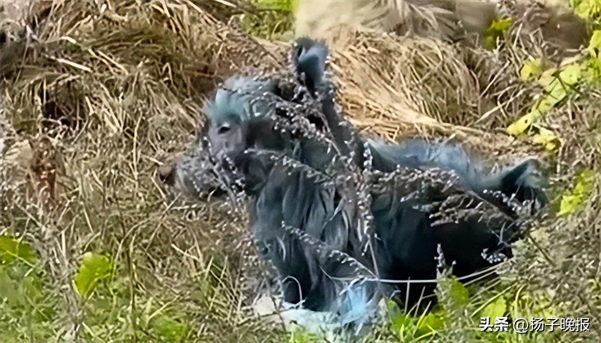 视频显示,这些狗的毛发呈现均匀的亮蓝色,皮肤无明显异常,且行为活跃健康。