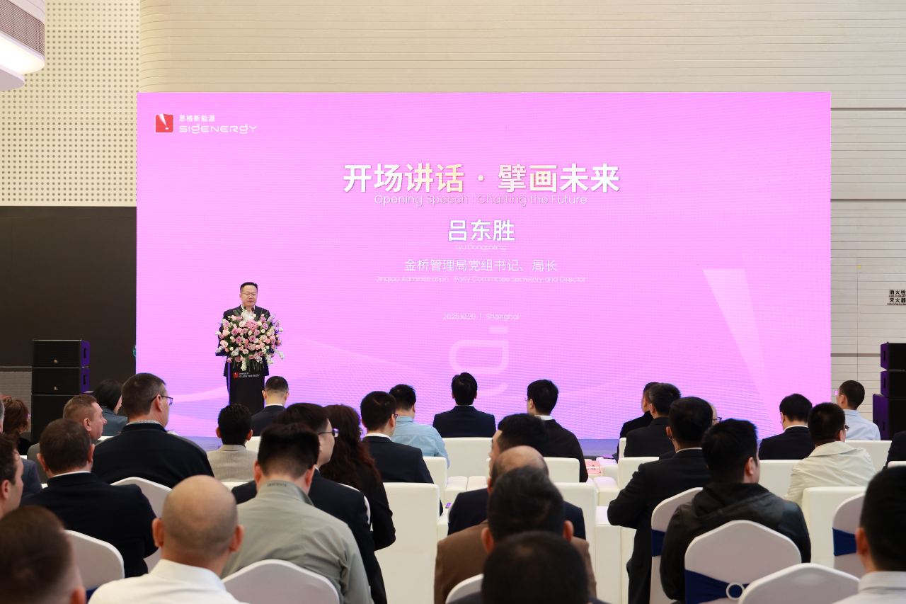 金桥管理局党组书记、局长吕东胜在致辞中表示,思格新能源全球总部在金桥的正式启航,不仅为金桥乃至浦东的新能源产业生态注入强劲的“超级引擎”,更将带动上下游产业链集聚发展,助力金桥打造以企业总部、研发与制造基地为核心的新型储能核心承载区。
