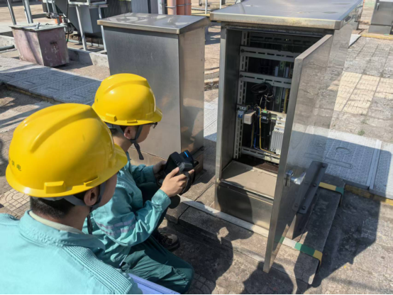 “两队”队员使用红外测温仪在负荷高峰期对保护屏、控制屏、端子箱内每一个接线端子、空气开关进行测温,精准捕捉因接触电阻增大而引起的异常过热现象;关注电缆敷设密集处、转弯处、穿管处低压电缆是否因碰撞、挤压、拖拽等损伤,确保其绝缘屏障完好无损;检查电缆敷设的弯曲半径是否合规,电缆是否满足技术标准,对电缆通道内防火设施是否规范安装,是否存在积水、杂物及腐蚀性气体进行细致核查,确保无视觉盲区。“电缆转角部分容易积热老化,要重点检查,防火封堵也要查看封堵是否严实,确保火灾时能有效阻燃。”排查过程中,老师傅一边带领年轻队员逐段巡视,一边在现场讲解关键要点,通过现场微课堂,以“边查边教、即查及学”的方式,有效提升青年员工的工作能力。