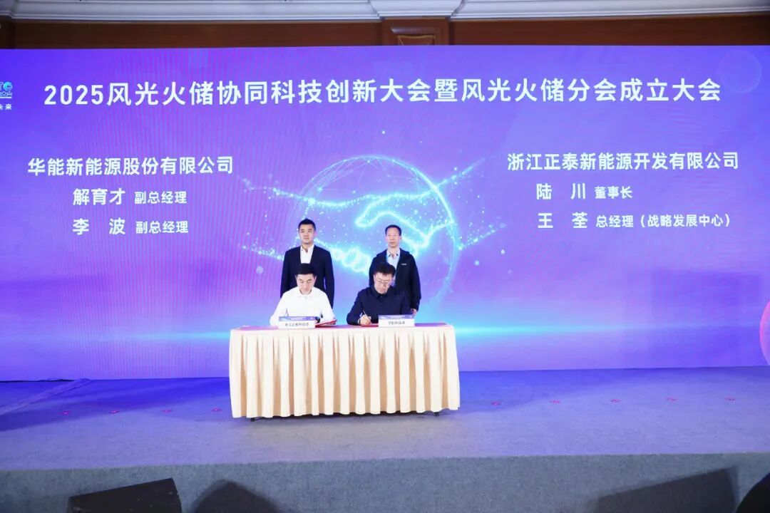 近日,中国国际科技促进会“2025风光火储协同科技创新大会暨风光火储分会成立大会”在北京隆重召开,正泰新能源受邀出席本次盛会。并在董事长陆川及华能新能源股份有限公司(以下简称“华能新能源”)副总经理解育才的共同见证下,与华能新能源正式签署框架合作协议。双方将以“技术+产业”双轮驱动,为风光火储协同发展注入崭新动力。华能新能源副总经理李波、正泰新能源战略发展中心总经理王荃代表双方签约。