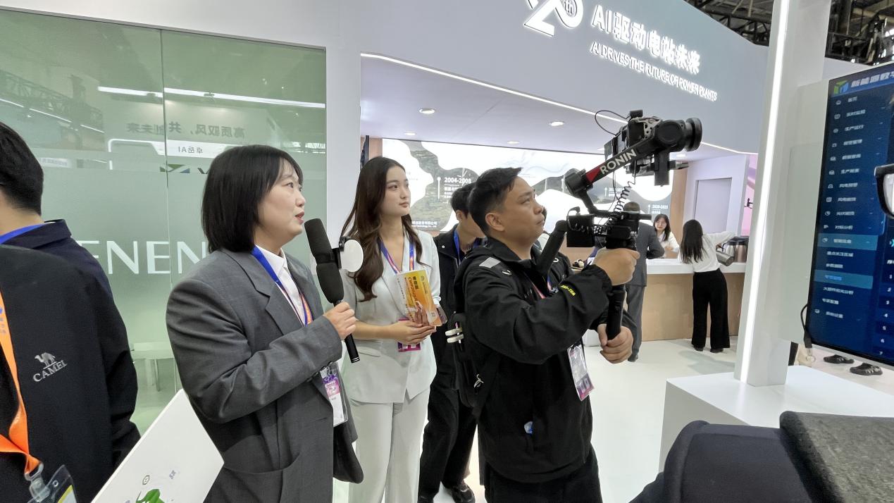 开展首日,展区众多专业访客莅临,与来自全球的能源企业代表、行业专家、技术工程师及媒体记者展开了深度交流。通过三维可视化大屏、AI智慧电站解决方案实时互动等环节,岳能科技动态展示了其在风电、光伏、储能等领域的数智化管控能力,特别是其“新能源+AI”的前沿技术应用,成为现场热议的话题。
