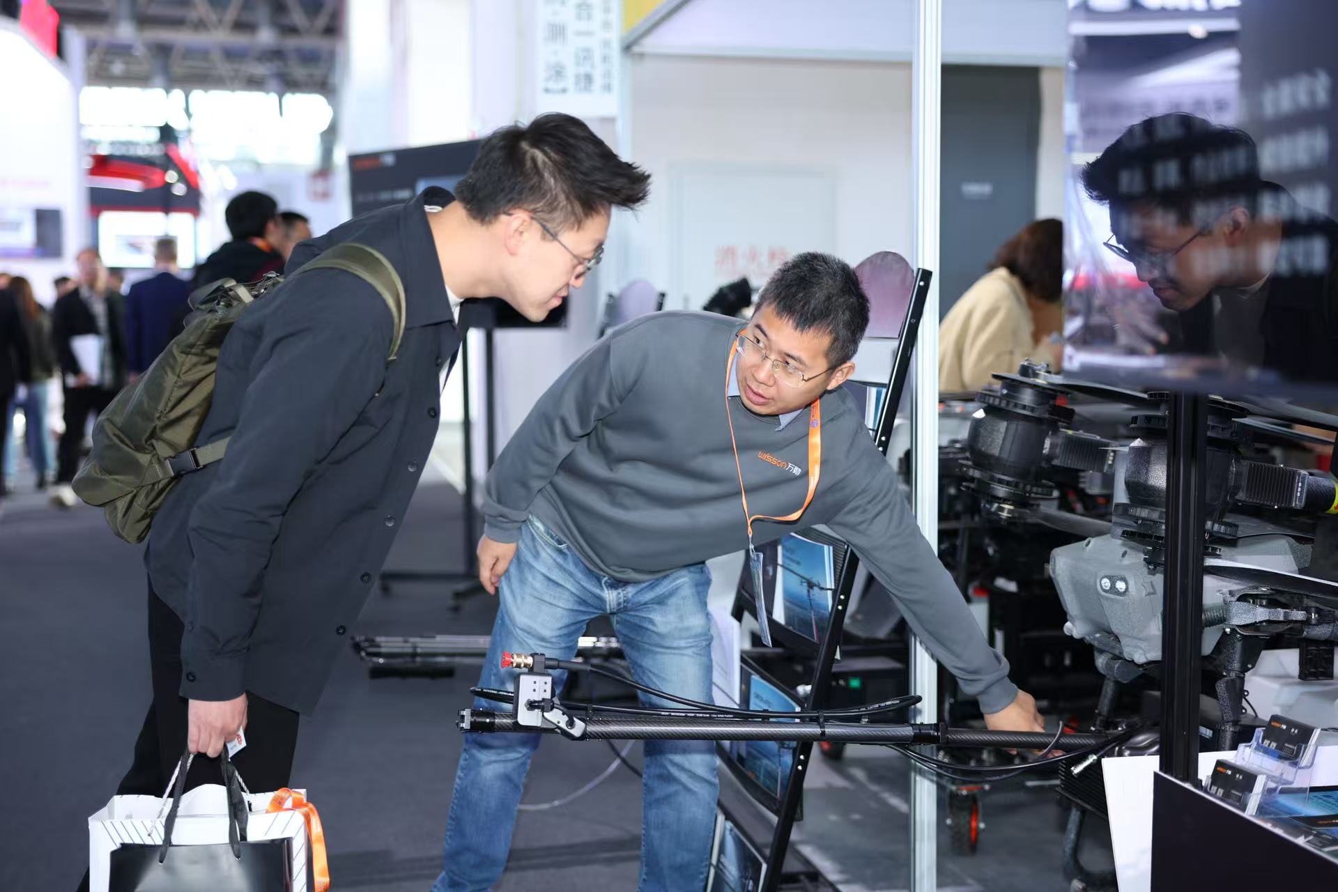在万勋科技展区的案例展示视频中,一场场“无人化空中手术”吸引了众多观众驻足:一台搭载着不同作业模组的无人机,正在百米高空扮演着“清洁工”、“喷涂师”、“检测员”等多种角色。万勋工作人员介绍,这是万勋科技风机运维「洗·测·涂」多合一迅捷作业平台,由 “柔韧关节+触觉AI”组成柔韧具身智能架构,基于大疆FC30/FC100无人机,通过搭配不同的作业模块,可以实现一机多能,高效覆盖风机清洗、防雷导通检测、防冰冻涂料喷涂、油漆喷涂四大场景。