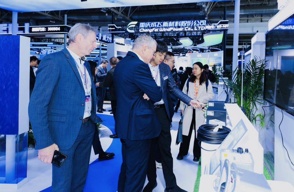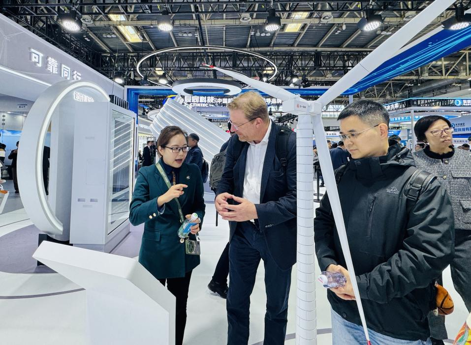 中国中车以风电全产业链创新之姿,携“风光储氢”等绿色多元技术、系列创新产品以及AI+风电一体化解决方案惊艳亮相,与海内外专家及行业伙伴共襄能源发展新范式。在中国中车展区中央,一座集海陆场景于一体的大型沙盘成为焦点。风力发电、抽水蓄能、变电所、绿算中心、运维中心等元素错落有致,生动呈现了风、光、水、储、氢、人工智能、碳交易等诸多领域的创新融合成果。这些元素在沙盘上协同运作,共同构建起一个高效、绿色、智慧的能源与产业生态,为实现 “双碳” 目标,推动经济社会的可持续发展提供了生动的实践范例。