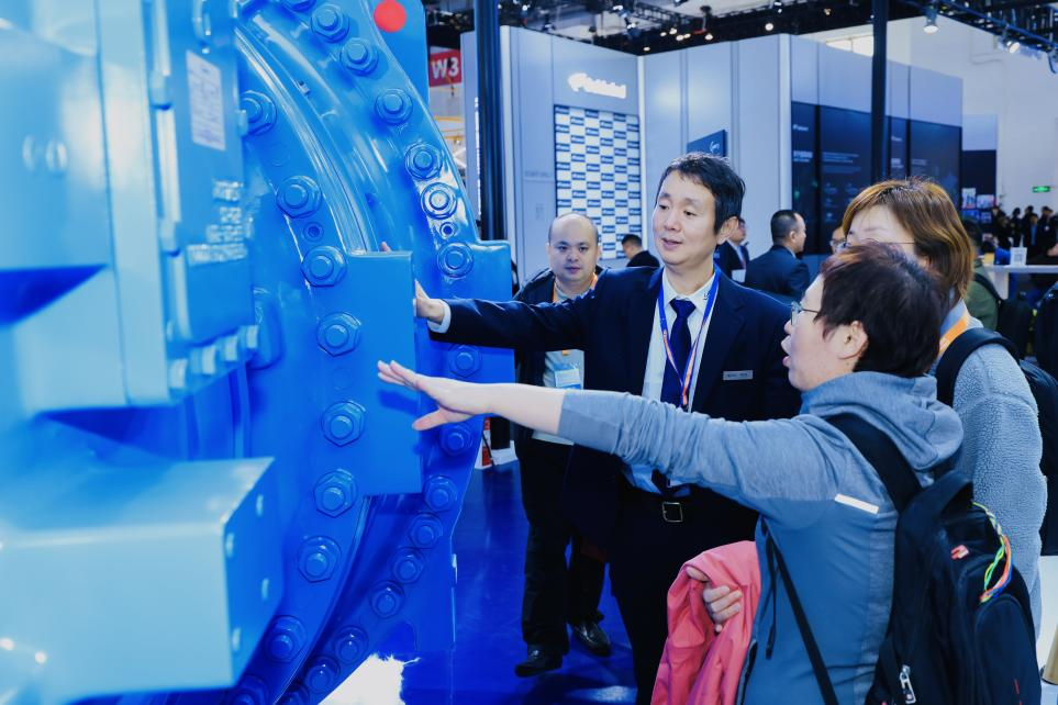 电气风电携手上海电气光伏、储能、氢能、调相机、电机、防腐等板块,以“好品质 可信赖”为主题,通过四大核心展区展现能源装备“国家队”的硬核实力。展台上的“WIND TO X POWER TO FUTURE” 中心展项,集中展示了中国首批绿电制氢就地消纳示范项目——上海电气洮南市风电耦合生物质绿色甲醇一体化示范项目、全球首个漂浮式风渔融合示范项目、深远海制氢示范项目及万里长江首个“零碳岛”等标杆示范案例,展示了上海电气在新能源全产业链的系统集成能力和创新实力。