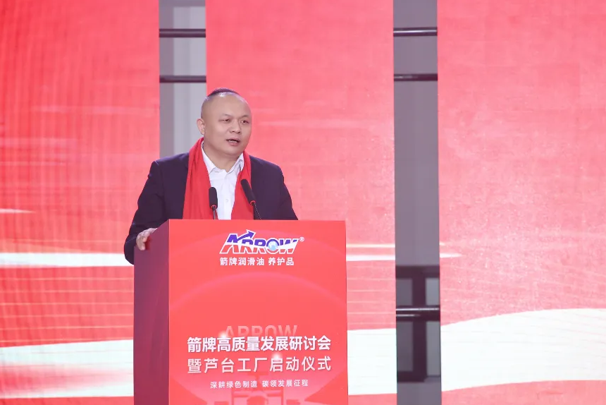 在致辞中,箭牌集团董事长杜彬深入阐述了“为什么要建设箭牌芦台绿色智能工厂”,并向支持和帮助过箭牌发展的各界人士表示衷心感谢。长期以来,箭牌始终坚持绿色、低碳、可持续高质量发展之路,为润滑油行业中国品牌走向世界贡献一份自己的力量。此次芦台工厂的建成投产,亦是箭牌作为润滑行业中国品牌走向世界的一大重要里程碑。