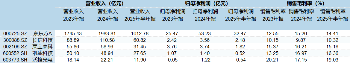 沃格光电可比公司情况。来源:财报,界面新闻编制
