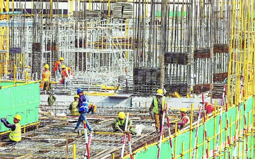 10月6日,在国际路港物流服务园区CD地块二区项目,中建三局施工人员正在施工。该园区建成后,将有力提升乌鲁木齐国际陆港区多式联运能级,推进铁路、公路、航空高效衔接。 □石榴云/新疆日报记者约提克尔·尼加提摄