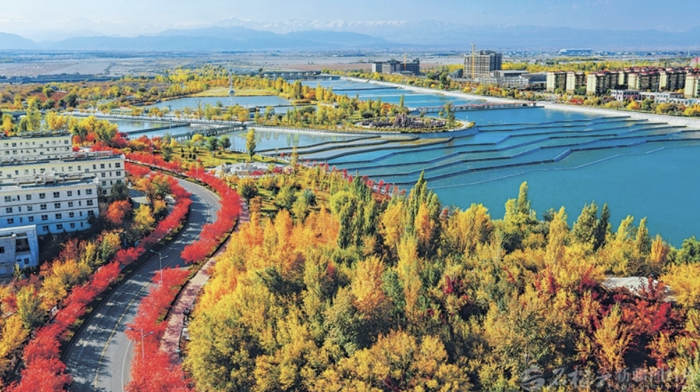 深秋时节,精河县城河水清清、层林尽染,犹如一幅色彩绚烂的油画。近年来,该县通过实施河道生态系统修复、构建生态绿廊等措施,建设“生态优美、绿色低碳、宜居宜游”的生态城市。孙明亮 摄