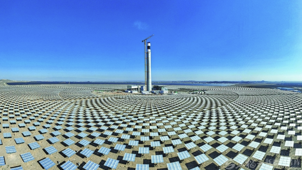 正在建设中的博州10万千瓦储热型光热配建90万千瓦新能源项目现场(10月20日摄)。近年来,博州加快推进新能源项目建设,新能源装机占比持续攀升。 于苏甫·艾尼 摄