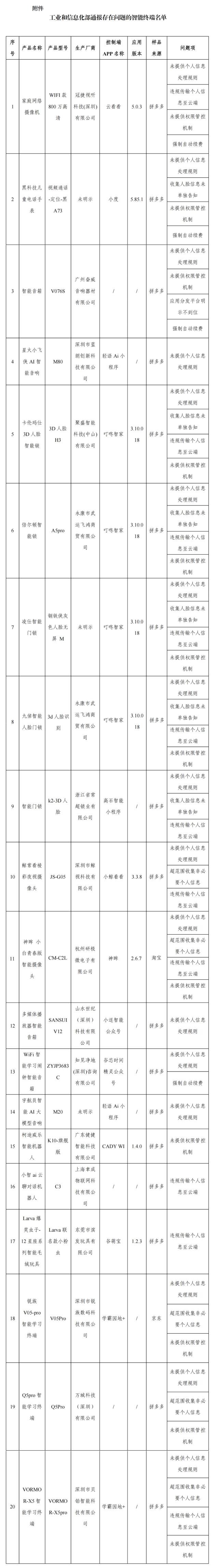 据介绍,根据中央网信办、工业和信息化部、公安部、市场监管总局等四部门联合发布的《关于开展2025年个人信息保护系列专项行动的公告》,按有关法律法规要求,工信部对智能终端违法违规收集使用个人信息等问题开展治理。近期,经组织第三方检测机构进行抽查,共发现20款智能终端存在侵害用户权益行为。