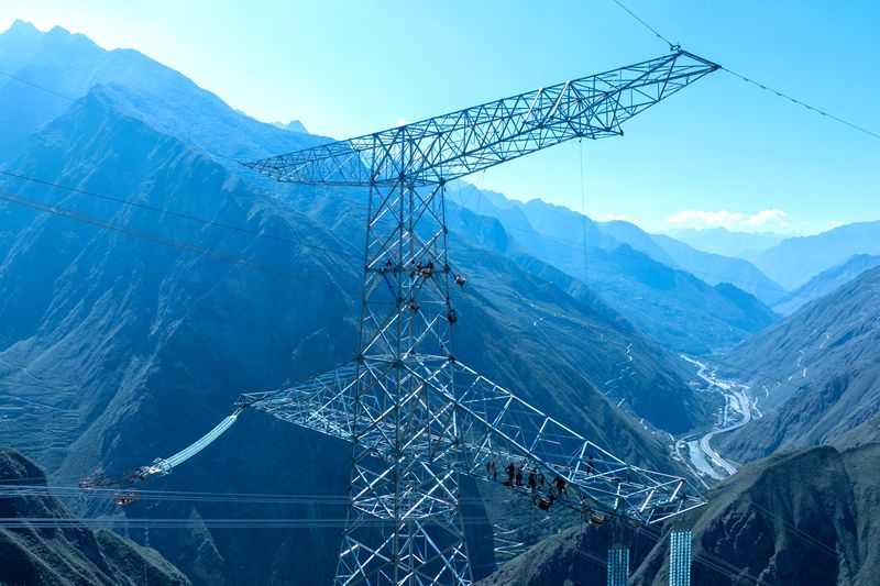 在四川省阿坝藏族羌族自治州汶川县,阿坝—成都东1000千伏特高压交流工程进入组塔放线施工高峰期。10月2日,电网施工人员正抓紧开展阿坝—成都东特高压工程大档距跨越架线工作。在阿坝藏族羌族自治州理县米亚罗镇海拔3620米的山顶,新建的阿坝1000千伏变电站进入场平施工最后冲刺阶段,施工人员正抓紧开展58米高填方边坡回填作业。节日期间,国网四川电力提前编制管理方案,合理安排工期,加大现场班组及设备投入,5000余名施工人员坚守工地,保障施工按计划有序进行。