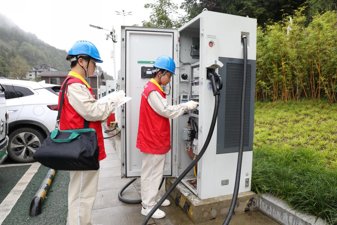 国网重庆酉阳供电公司员工在桃花源景区检查充电桩。庞涛丹/摄