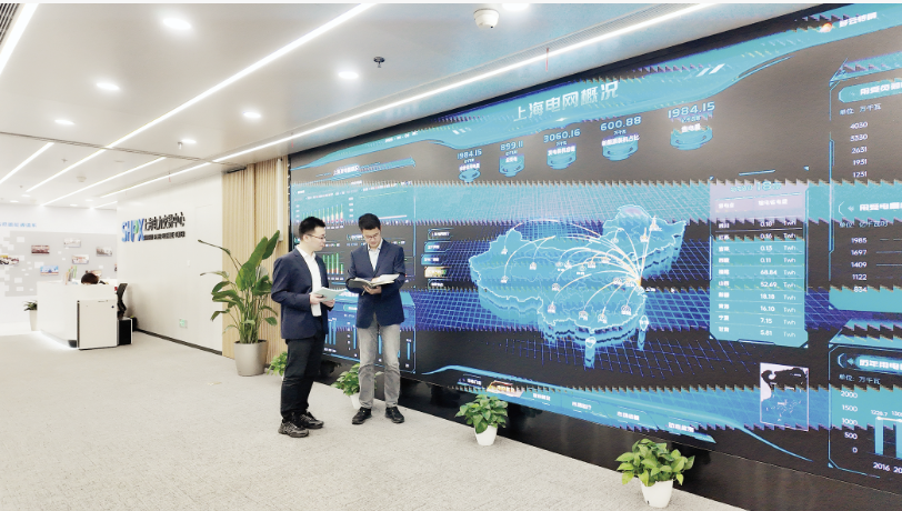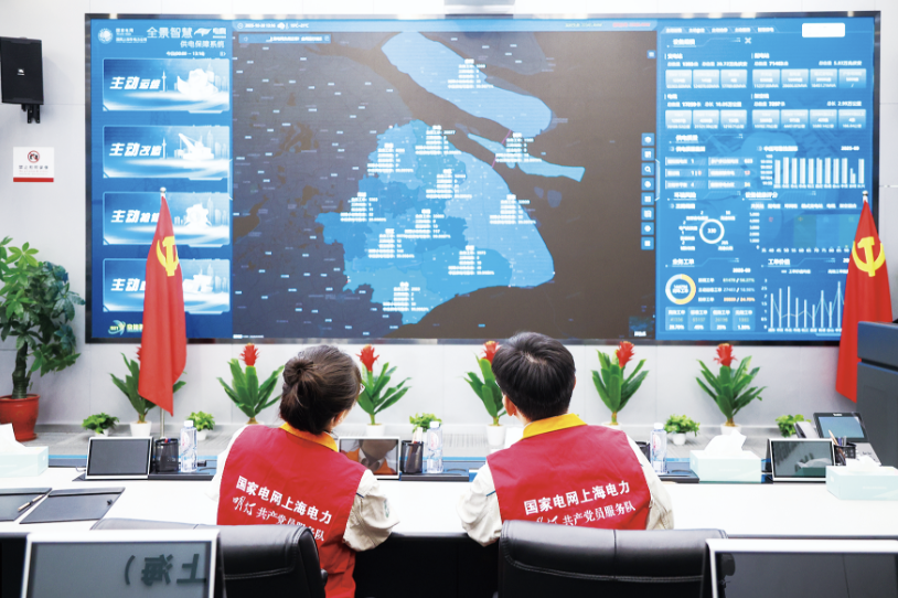 图为国网上海电力工作人员查看全景智慧供电保障8.0 系统。吴晓旭/摄