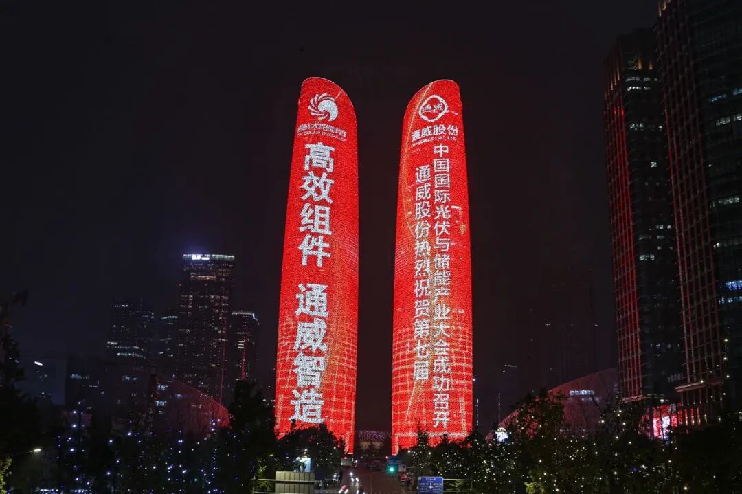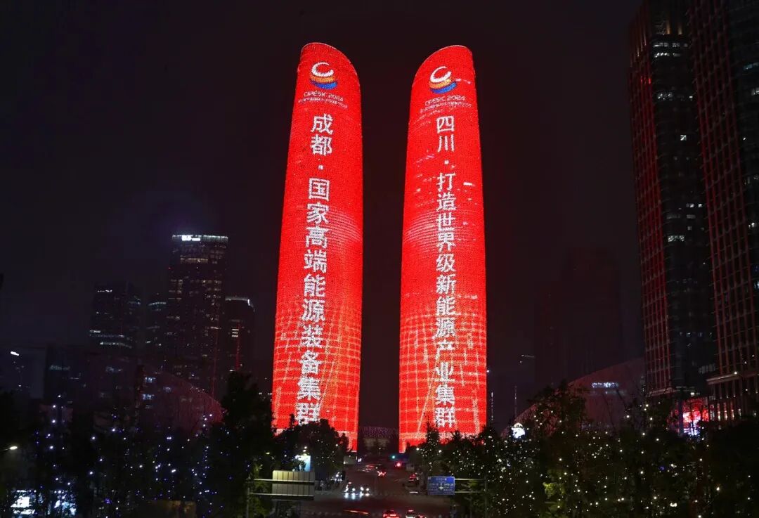 2024中国国际光伏与储能产业大会形象广告亮相成都双子塔