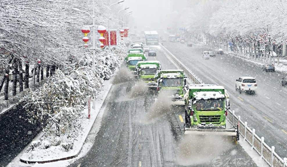 11月6日,乌鲁木齐市沙依巴克区环卫清运队在主干道清雪。石榴云/新疆日报记者单坤 摄