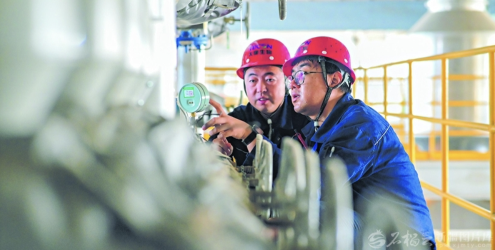 11月8日,工作人员在呼图壁天康植物蛋白有限公司智能化生产车间检查设备。该企业以棉籽为原料,采用低温脱酚技术规模化加工产品,每年可处理棉籽20万吨,年产值约6亿至8亿元。陶维明 摄