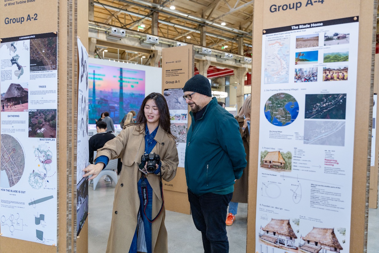 同济大学建筑系副主任刘刊、教授华霞虹认为,与远景的合作让建筑教育得以拓展新视野,探索建筑与基础设施融合设计的新场景和新机遇。她指出:“这不仅是材料的循环,更是一次‘空间营造’和‘社会设计’。年轻创作者们勇敢迎接全球性的环境挑战,通过将风叶这种特殊尺度和材质的基础设施构件转化为服务于特定场所与人群的空间装置,绘制可持续未来的图景。”
