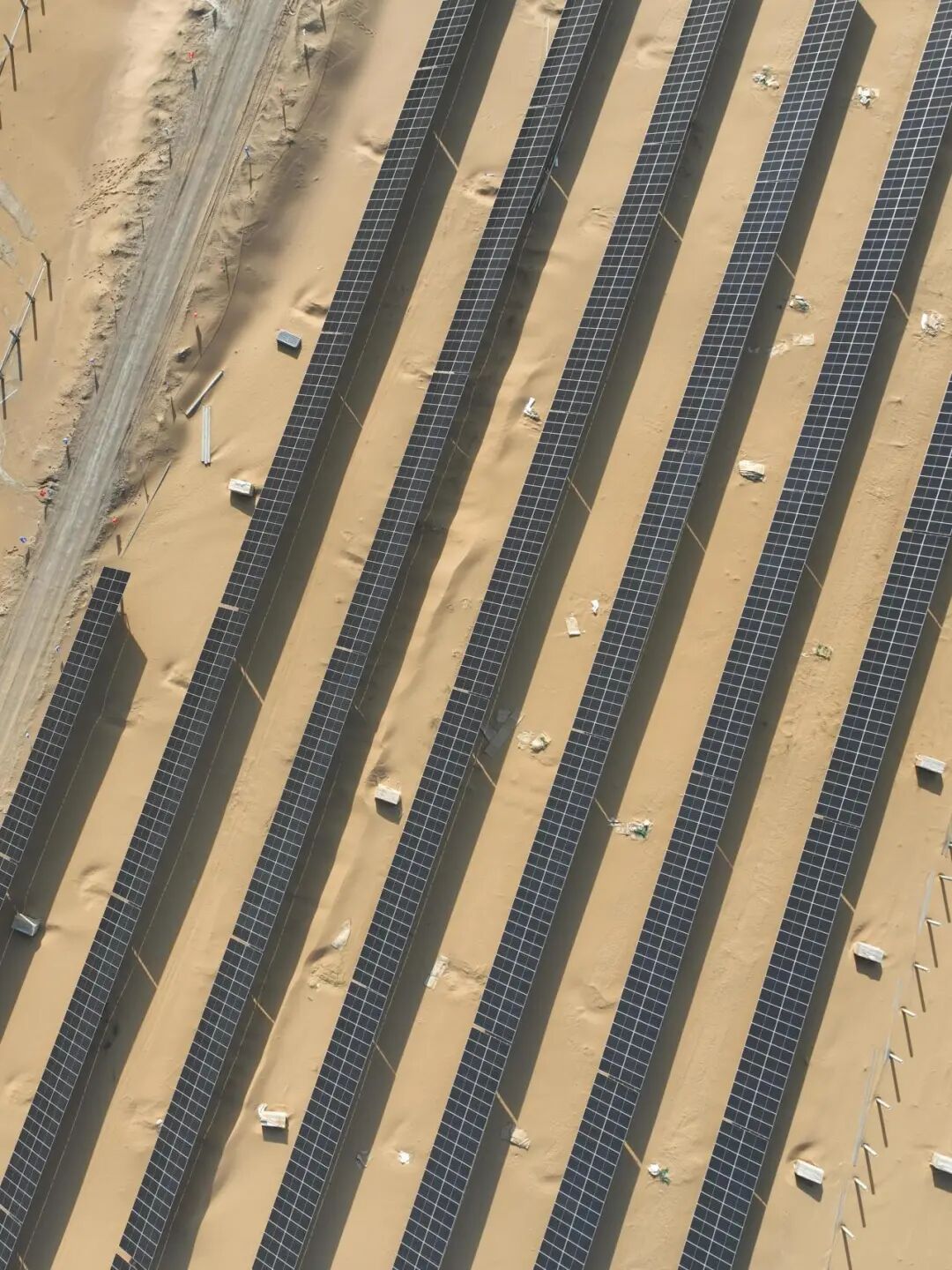 在光伏领域,创新采用BC高效组件,鄂尔多斯达拉特旗防沙治沙项目全部选用隆基绿能BC技术路线组件,安装块数合计超过75万块,在保证2382×1134mm同样尺寸光伏组件的同时,提升了单块组件的转换效率,由常规的620W提升至645W/650W,转换效率由原本的22%提升至23%,减少约3.6万块光伏组件的安装费用,节省项目土地使用面积约4.5%,有效缓解了项目用地、组件排布紧张的问题。该项目为国内首批次大范围使用BC技术的项目,为后续项目建设提供了多种技术选择路线,同时推动光伏行业向新的生产加工方向转换;强化与华为合作,在现有逆变器技术的基础上开展科技赋能管理,通过对天气、功率及设备运行工况的预测,提前判断设备可能出现故障的时间,为提高项目发电量、增加项目收益提供新的路径。