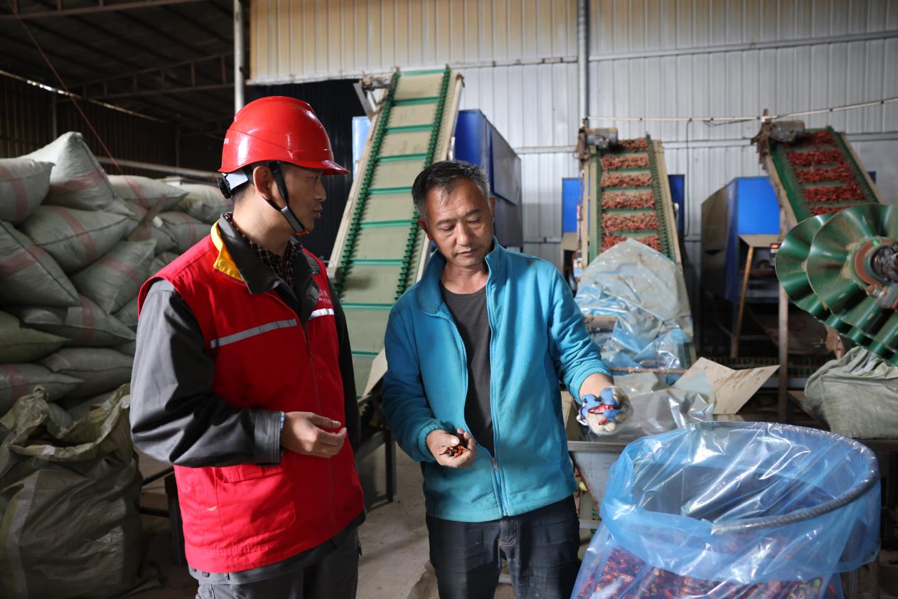 国家电网重庆电力(彭水)红岩共产党员服务队了解加工厂生产情况。储潇/摄