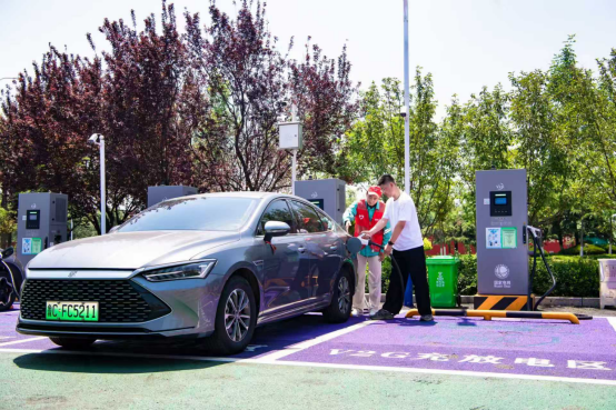 图为国网淄博供电公司服务新能源车主进行V2G放电。