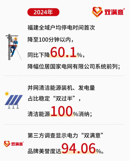 2021年至2025年,新时代电力“双满意”工程连续5年纳入福建省委和省政府为民办实事项目。