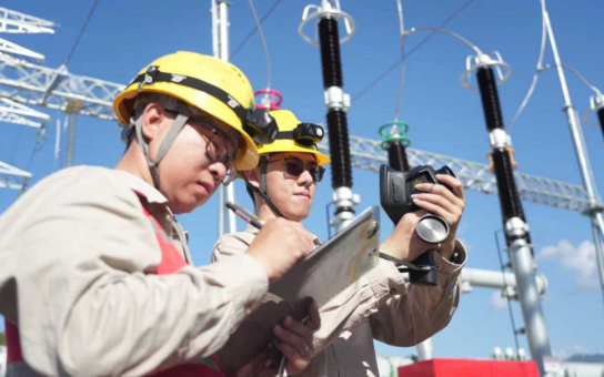 ▲国网三明供电公司工作人员正在220千伏观成变电站内进行巡检 谢章辉/摄
