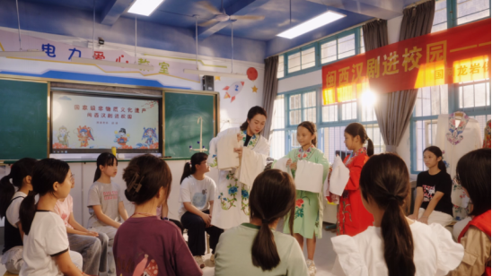 走进白沙电力希望小学,孩子们正沉醉在闽西汉剧带来的文化盛宴中。婉转的唱腔、精美的戏服、传神的表演,引得孩子们阵阵掌声。“手要像兰花一样轻轻翘起,眼神要跟着手指走。”闽西汉剧市级传承人胡婷老师一边讲解,一边为孩子们调整手势,指导孩子们学习基本身段动作与唱腔技巧。