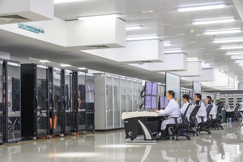 中国电科院科研人员在先进输电技术全国重点实验室开展直流控制保护联调试验研究工作。
