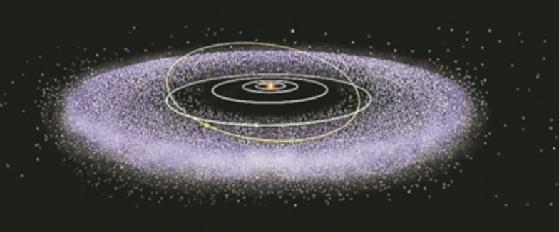 柯伊伯带是太阳系早期留下的物质区域,形似厚盘,起始于海王星轨道之外。