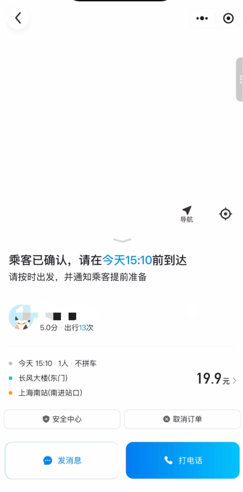 记者填写了自己的车辆信息,以及同事的姓名和身份证信息后提交,并让该同事人脸识别后,很快,记者接到系统信息显示“抢单成功”,平台发来信息称“乘客已确认行程并预付车费,请在约定时间到达乘客指定地点”,在接单页,有“出发接乘客”按钮。在测试结束后,记者取消了该订单。