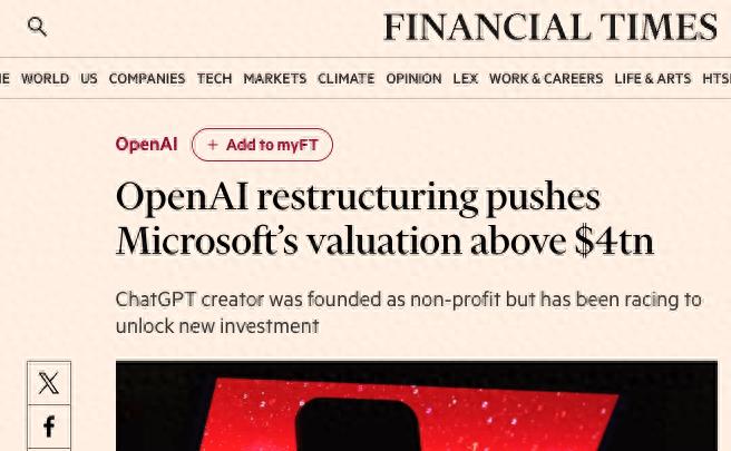 10月29日消息,据金融时报报道,OpenAI正式宣布完成重组,通过向最大股东微软转让价值1350亿美元的股份,推动后者市值突破4万亿美元大关。