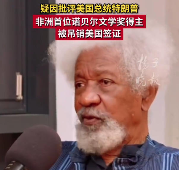 据《旗帜报》消息,非洲首位获得诺贝尔文学奖的作家沃莱·索因卡28日在新闻发布会中表示,美国驻拉各斯领事馆已经吊销了他的美国签证,此前索因卡持有美国永久居留权。