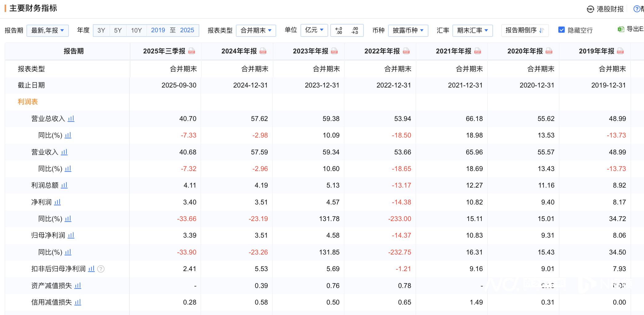 在归母净利润方面,2019年-2024年分别实现8.06亿元、9.31亿元、10.83亿元、-14.37亿元、4.58亿元、3.51亿元,同比变动幅度为34.50%、15.43%、16.31%、-232.75%、131.85%、-23.26%。